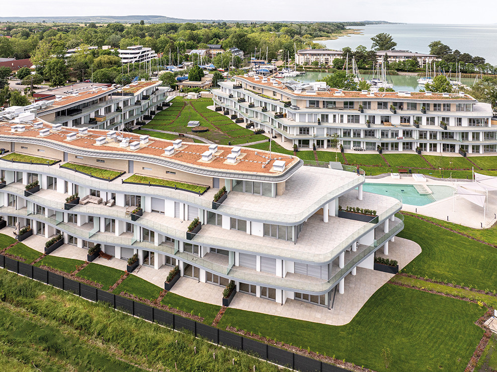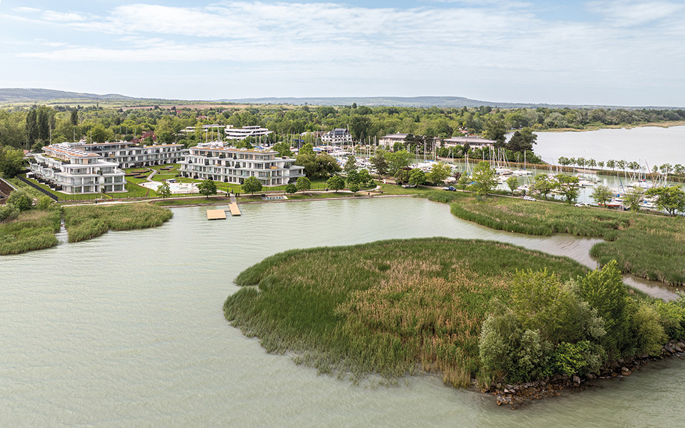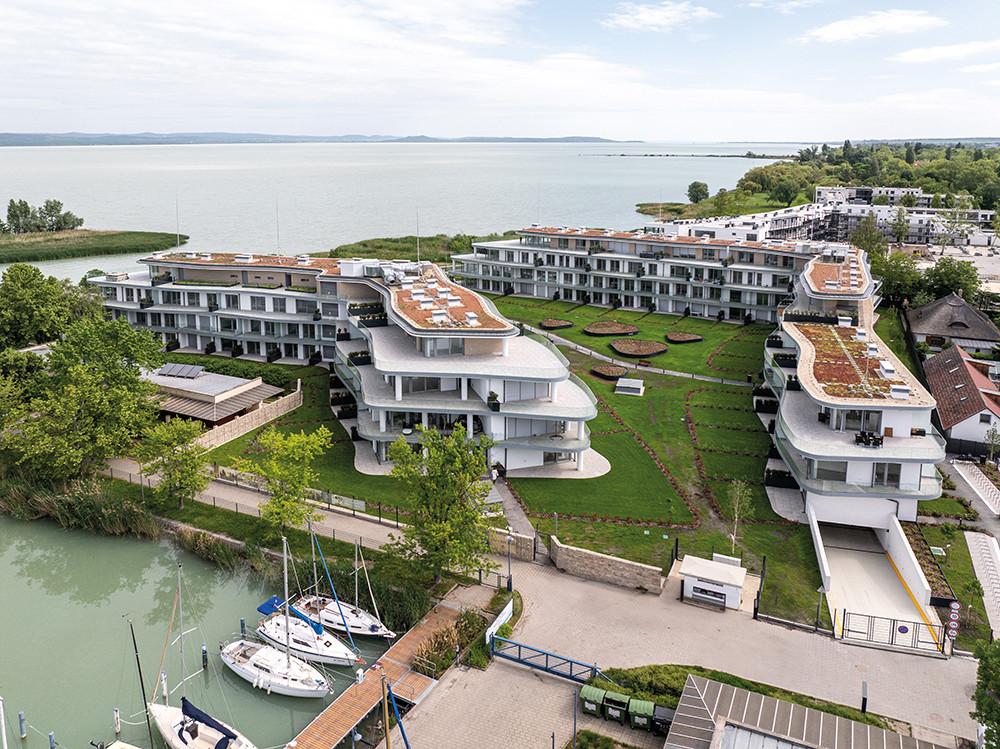 A Balatonszemes központjától pár percre található, fenntartható tóparti luxust kínáló projekt részeként 152 lakást építettünk változatos alaprajzi elrendezéssel. A panoráma, az impozáns és innovatív építészeti megoldások és a kiváló minőségű beépített anyagok mellett a fejlesztés kültéri úszómedencével, parkosított kerttel, szaunával és jakuzzival gondoskodik arról, hogy az itt lakók egész évben élvezhessék az exkluzív kikapcsolódás élményét. Szinte minden lakásból zavartalan kilátás nyílik a Balatonra: a Hunyady József Vitorláskikötőre és/vagy a közeli partszakaszra, illetve a gondosan tervezett és karbantartott belső kertre.