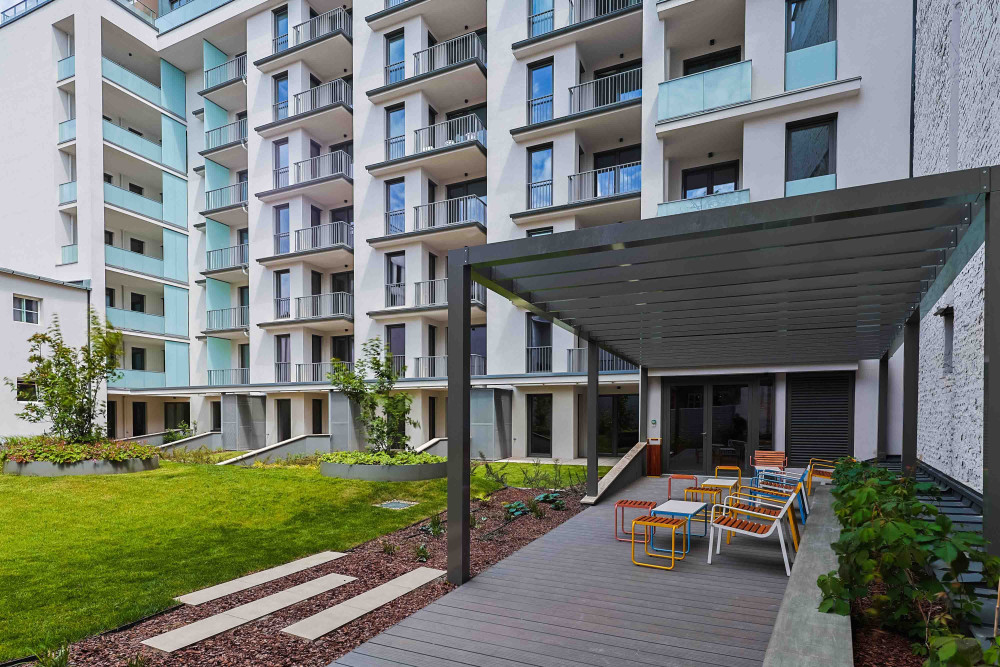 A projekt 100 prémium minőségű lakást kínál, ami intimebb, családiasabb és exkluzívabb jelleget kölcsönöz az épületnek. A mind formájában, mind anyaghasználatában egyedi és exkluzív homlokzatú épület különlegessége, hogy a környékbeli házakhoz képest szokatlanul nagy méretű zöld belső kert is a lakók kényelmét szolgálja, illetve bel- és kültéri közösségi terek szintén helyet kaptak.