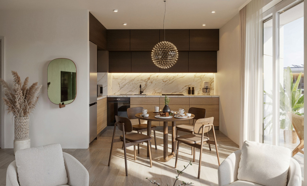 A lakópark épületei letisztult és nagyvonalú egységekből épülnek fel, amely ötvözi a nagyvárosi modern eleganciát a természetközeli életérzéssel.